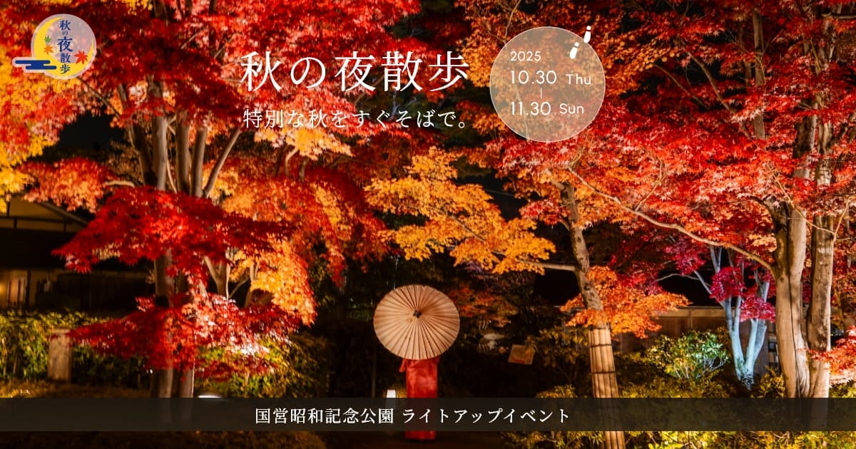 2019年から昭和記念公園のイルミネーションのライトアップが変更され、秋の夜散歩になりました。